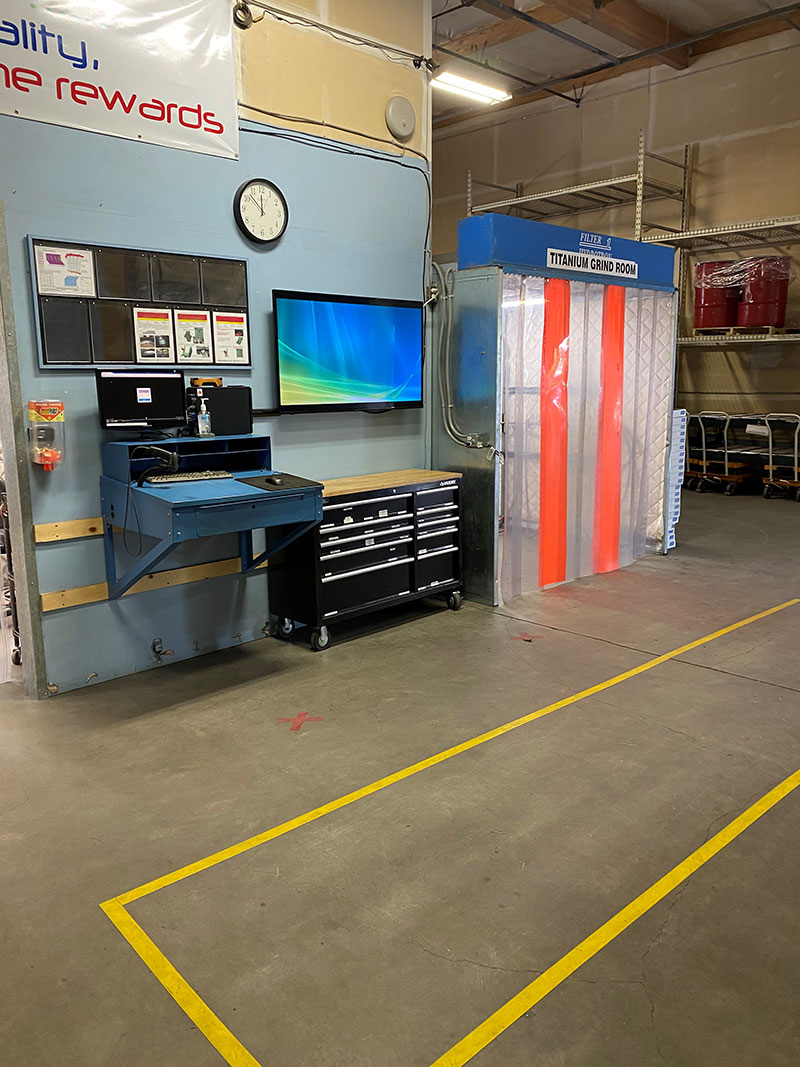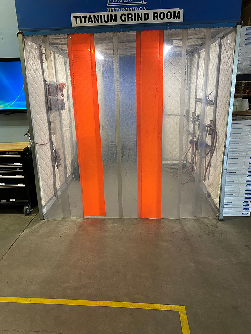 We are equipped to handle a multitude of materials from the standard Steel, Aluminum, and Stainless Steel to the more exotic Inconel and Titanium. Dedicated grinding cells allow for isolation of material types to prevent cross contamination concerns. Wet collection booths allow for the safe processing of titanium parts.